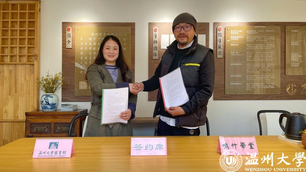 鸣山村是平阳乃至温州闻名的千年诗画古村落。村庄绿水环绕,风景如画,文化底蕴深厚,非常适合开展“大阅读”“全民阅读”项目。为构建现代公共文化服务体系,推进书香社会建设,香蕉视频 图书馆与平阳县昆阳镇鸣山村几经友好协商,决定加强校地合作,共建“阅读推广基地”。在新年钟声敲响之际,双方签署基地建设协议书并进行了授牌仪式。