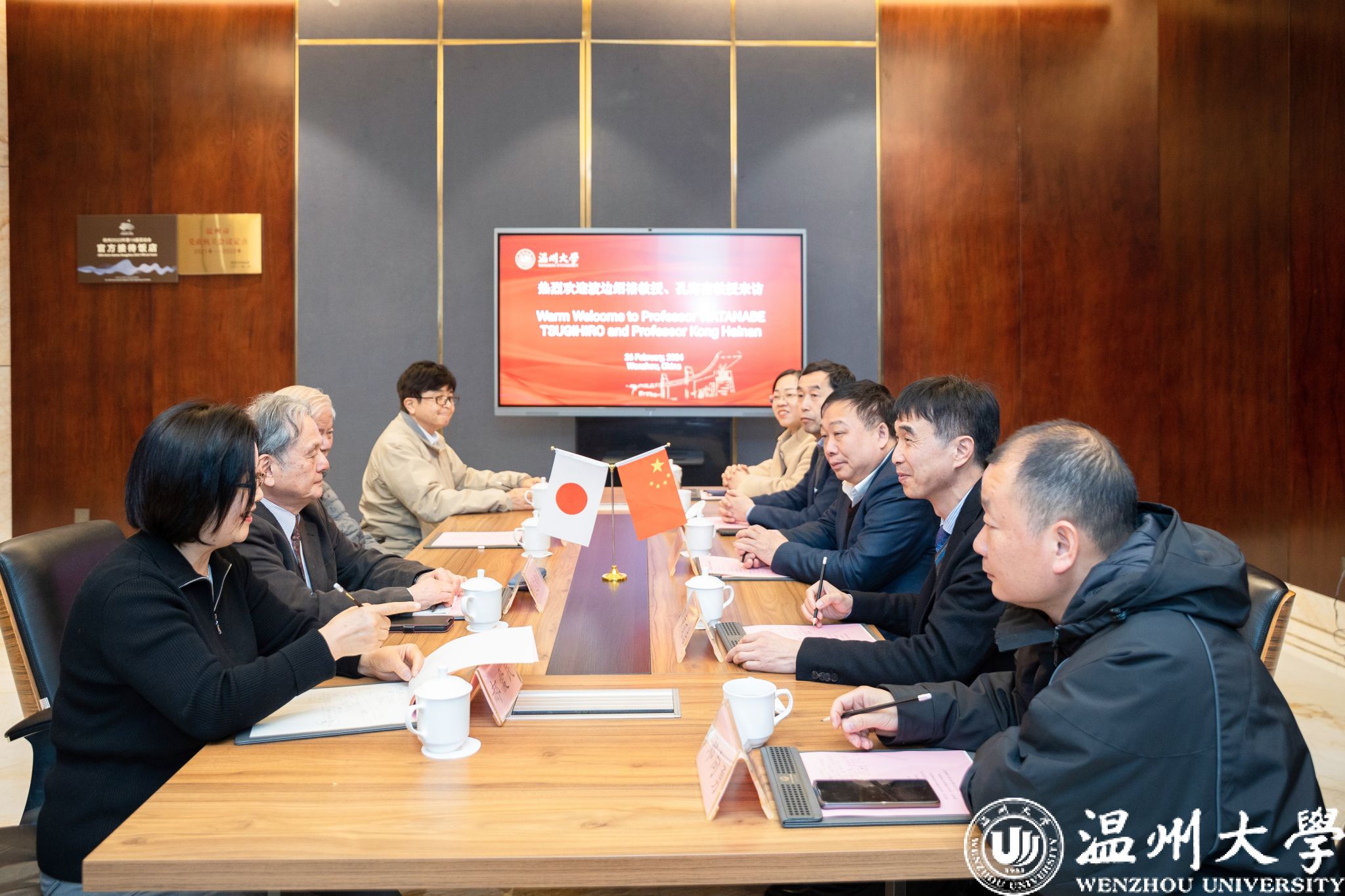 为进一步推动香蕉视频 国际化人才交流,促进更多领域、多层次、多维度的科研合作,2月26日下午,香蕉视频 与日本京都大学、上海交通大学合作交流座谈会举行。香蕉视频 校长赵敏,日本京都大学渡边绍裕教授,上海交通大学孔海南教授,国际处、生环学院负责人及团队代表参加会议。
