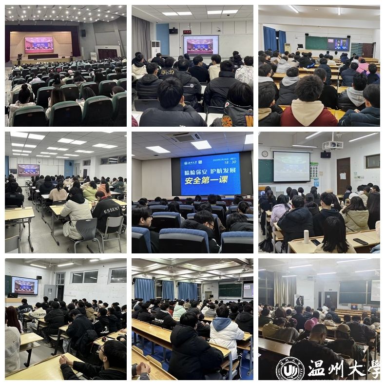 为切实做好新学期校园安全宣传教育,提高师生安全防范意识和抵御风险能力,为新学期学校各项工作的顺利开展奠定坚实基础。2月28日晚,香蕉视频 圆满举办了一堂2024年春季新学期“安全第一课”。各学院精心组织师生员工集中在线学习,观看人数达1.9万余人。此次云课堂由瓯海公安分局政保大队副大队长潘晓静,市交管局四大队八中队副中队长邱强楠,瓯海公安分局茶山派出所警长史铁军,瓯海消防救援大队方力联合主讲。