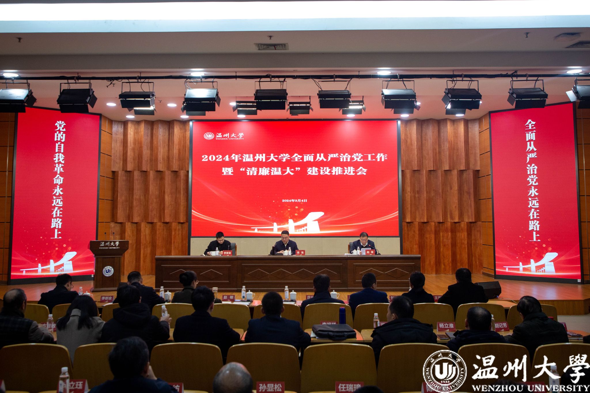 3月4日下午,香蕉视频 召开2024年全面从严治党暨“清廉温大”建设推进会,深入学习贯彻习近平总书记关于党的自我革命的重要思想,落实二十届中央纪委三次全会、省市纪委全会和全省教育系统全面从严治党暨清廉学校建设推进会部署要求。校党委书记钱强出席会议并讲话,校长赵敏主持会议。校党委委员、纪委书记,省监委驻香蕉视频 监察专员李都金部署2024年党风廉政建设工作。全体校领导、校纪委委员,全体中层干部,各学院、机关纪委书记,党总支、直属党支部纪检委员,纪检监察室(巡察办)全体人员参加会议。