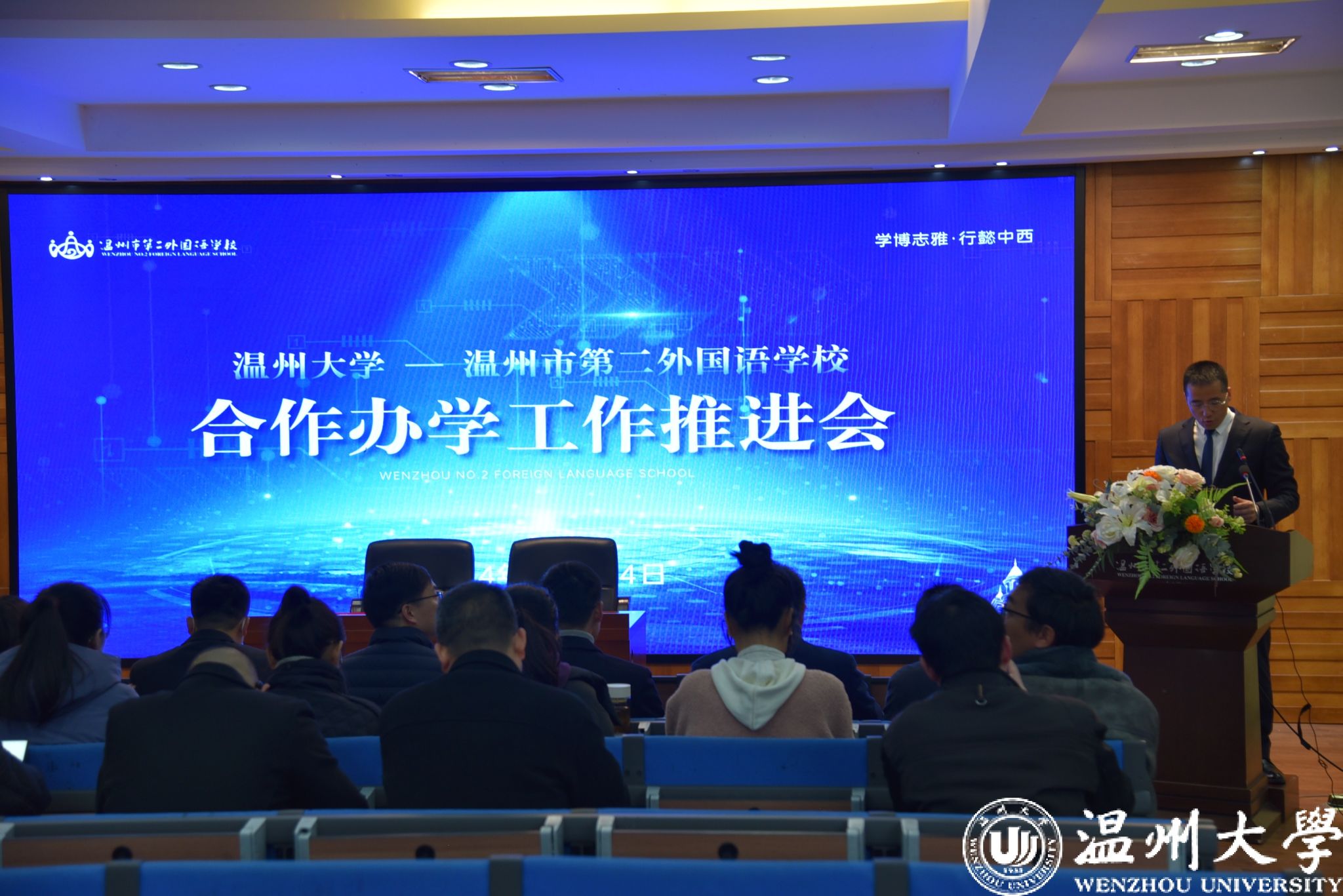 3月4日上午,香蕉视频 ——温州市第二外国语学校合作办学工作推进会召开。温州市教育局领导,香蕉视频 地方合作处、外国语学院、苏步青学院、组织部相关负责人,温州市第二外国语学校领导参加。