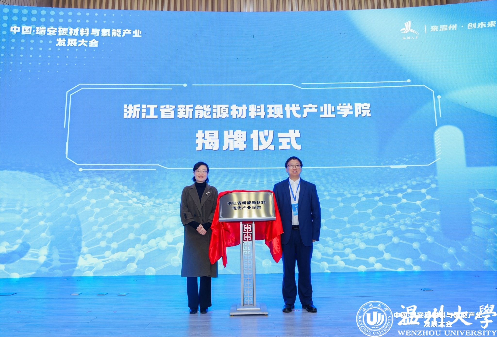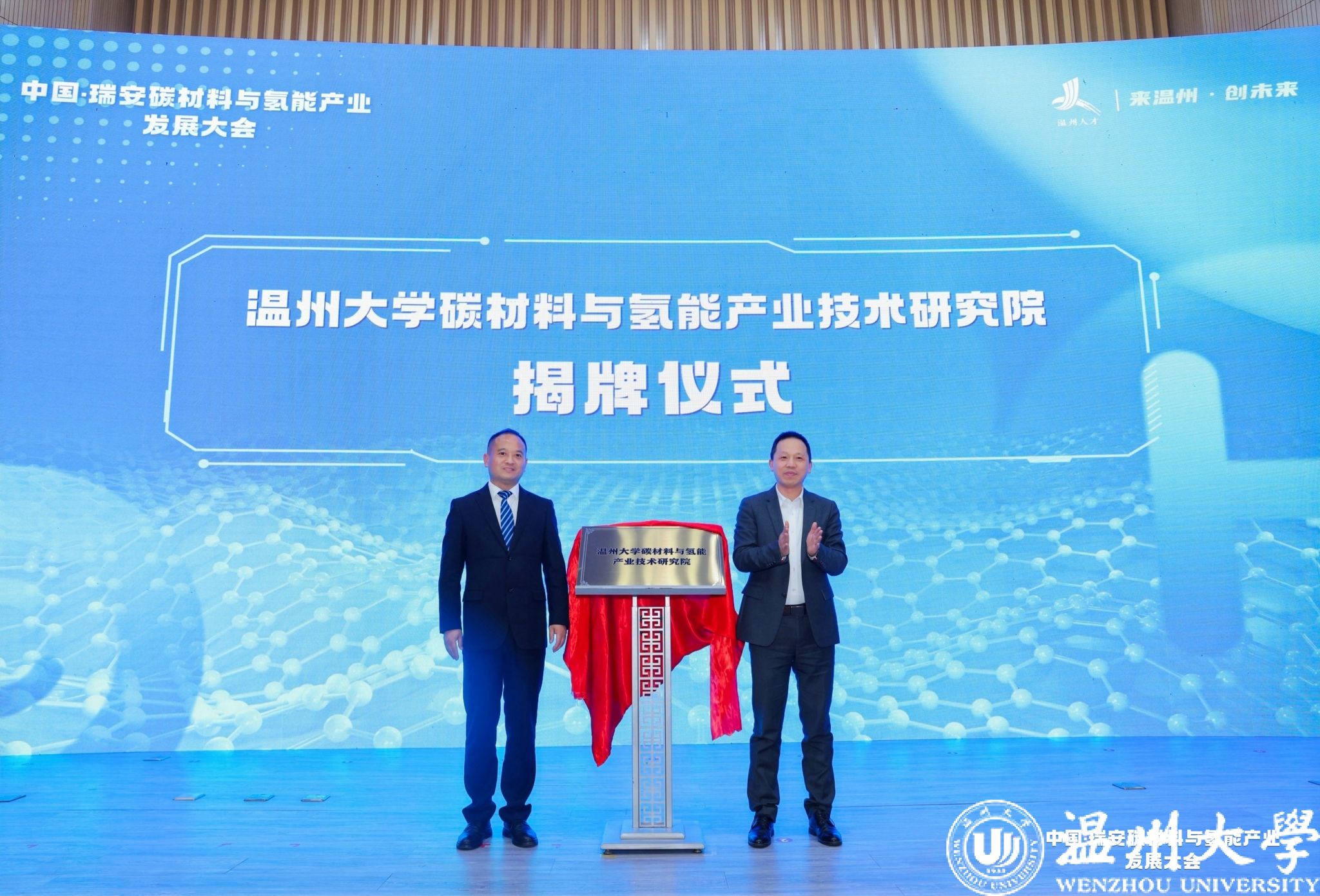 随后举行香蕉视频 碳材料与氢能产业技术研究院的揭牌仪式。未来研究院将以新型碳材料和氢能产业化研发、构建国际创新高地为目标,对接全球资源,建设“高、精、尖”碳材料及氢能产业领域的研究院,助推温州打造碳氢产业集群。