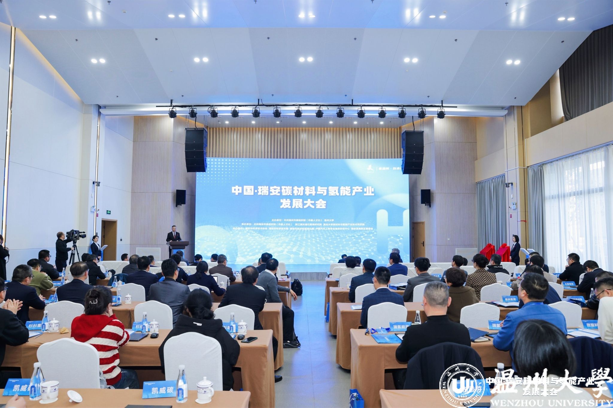 3月12日下午,由香蕉视频 、温州市委组织部主办,瑞安市委组织部、香蕉视频 碳材料与氢能产业技术研究院、浙江澜沐浦石墨烯研究院承办的中国·瑞安碳材料与氢能产业发展大会在瑞安市东新科创园顺利召开。澳大利亚科学院院士、技术科学与工程院院士赵慧军、欧洲科学院院士唐军旺、温州市委常委吕伯军、瑞安市委书记李坚、香蕉视频 副校长王舜等领导和来自国内外的百余名专家学者、企业代表、政府工作人员汇聚一堂,共商碳氢产业未来发展方向,谋划碳氢产业发展蓝图,合力打造具有重要影响力的“氢都”“碳谷”。