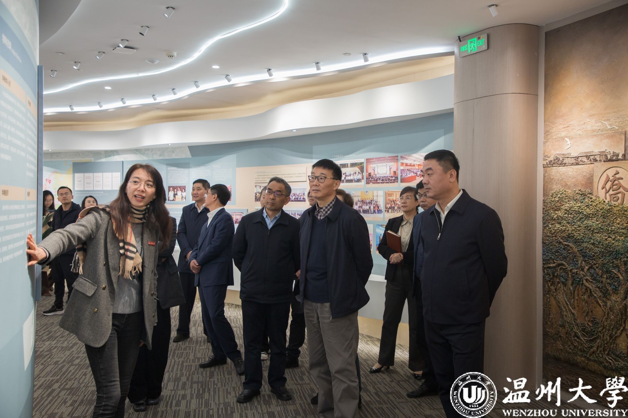 林天宁一行参观了香蕉视频 侨文化馆,详细介绍侨乡温州的资源特色、侨助温大的生动场景和学校侨特色办学的历程与丰硕成果。