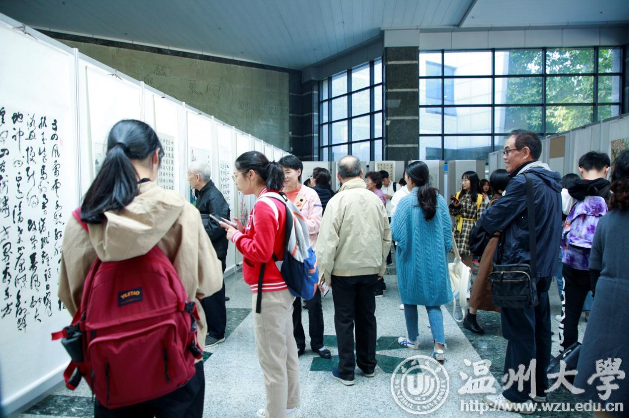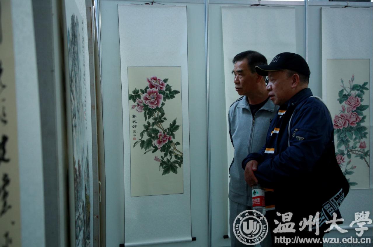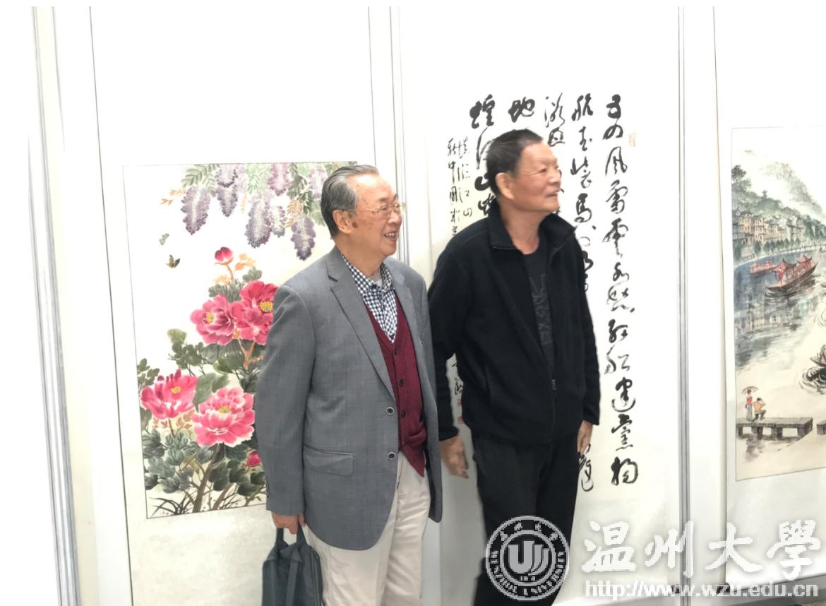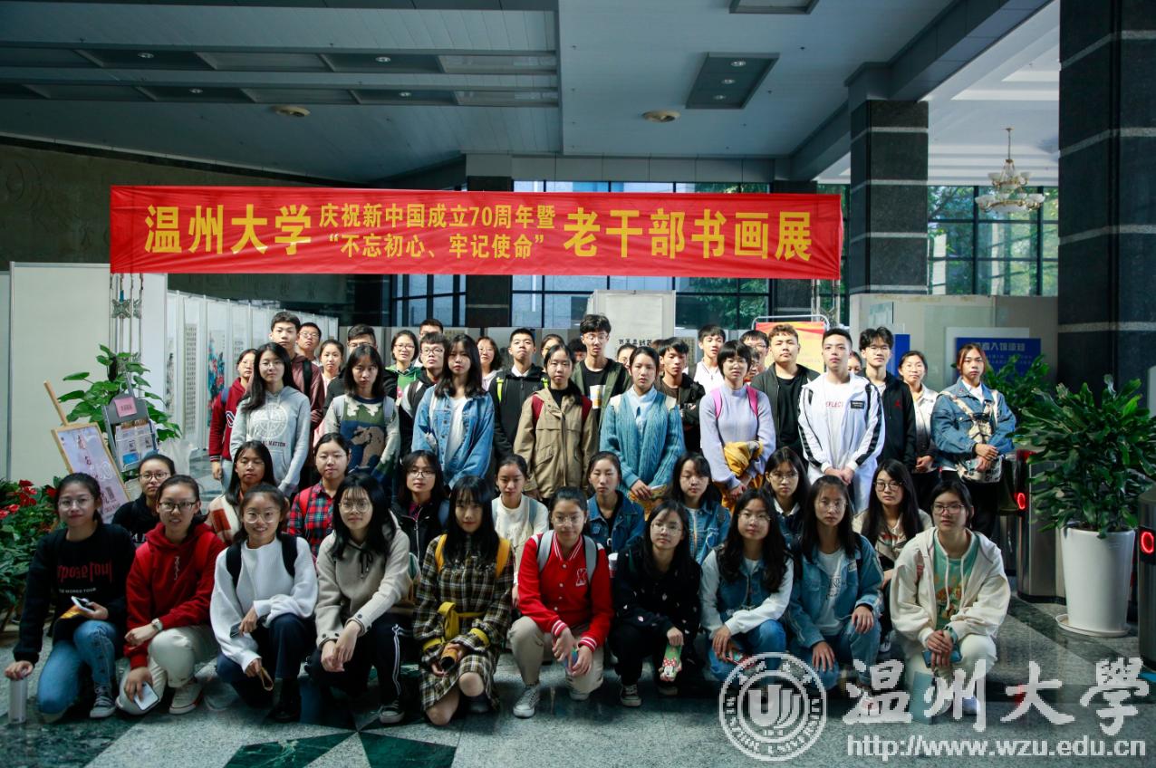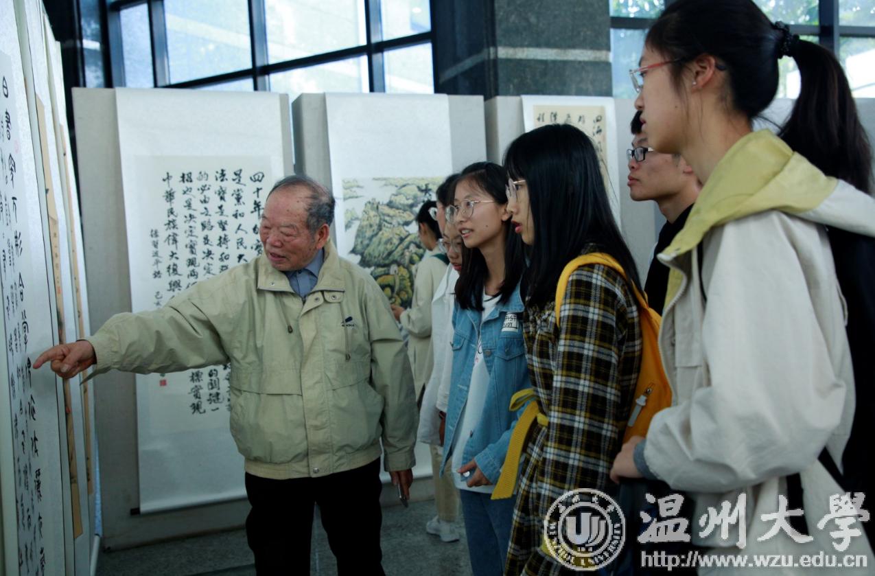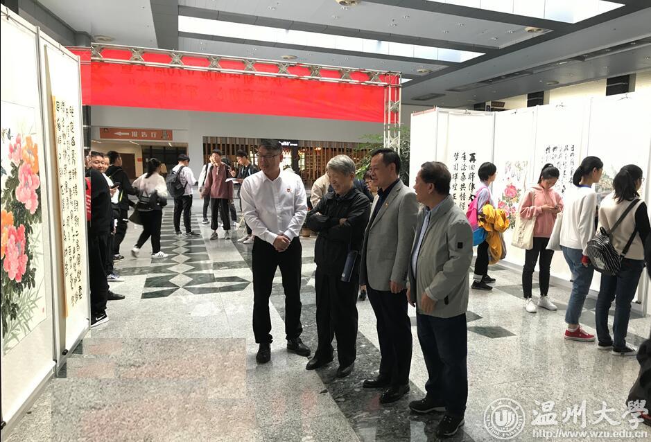 翰墨绘盛世,丹青颂祖国。10月31日上午,由校党委宣传部、离退休工作处、图书馆联合主办,老干部书画院承办的香蕉视频 庆祝新中国成立70周年暨“不忘初心、牢记使命”老干部书画作品展在图书馆一楼开展。学校老领导金礼义、林选青、毛政敏,宣传部、瓯江学院、离退休工作处负责人,老书画家们及香蕉视频 师生现场观展。