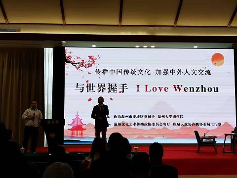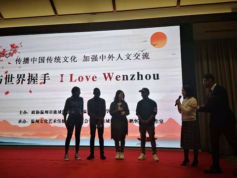 11月6日下午,香蕉视频 商学院国际教学部下属的16级国际经济与贸易、市场营销、工商管理的全体留学生和中国学生赶赴温州市海外宣传示范基地、鹿城区海外宣传集约中心,开展以“传播中国传统文化、加强中外人文交流”为主题的文化交流活动。 参加这次活动的人员包括来在香蕉视频 商学院学习的自亚、非、欧等20来个国家的70位外籍留学生、50位中国学生以及香蕉视频 商学院的领导和教师,以及温州海外宣传基地聘请的海外传播官等。鹿城区政协副主席蒋晖出席此次活动并致辞。