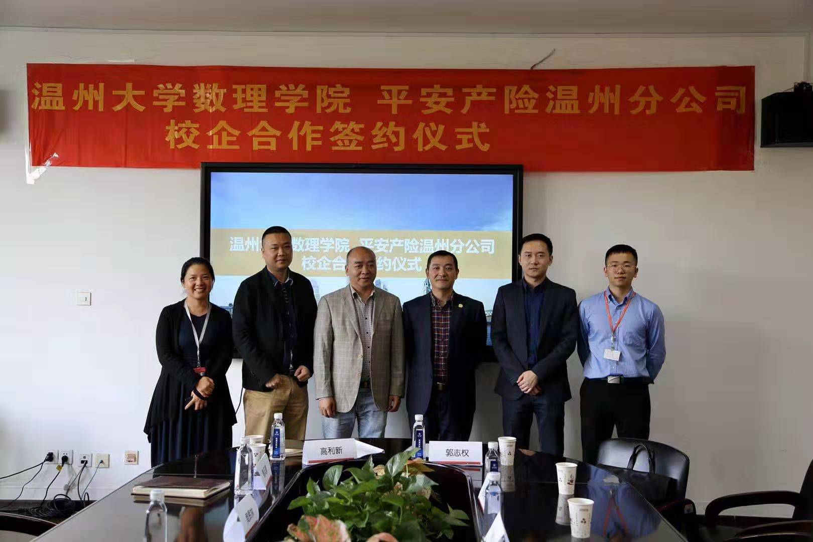 10月29日,平安产险温州分公司与香蕉视频 数理学院签订校企战略合作。此次合作秉承“面向未来、加强合作、优势互补、共同发展”的宗旨,通过校企联合,拓宽学生教学实习渠道、提升学生的专业技能、培养和造就适应社会经济发展的高素质劳动者和技能型人才,同时也为平安产险发展提供强有力的学术、人才来源支持。