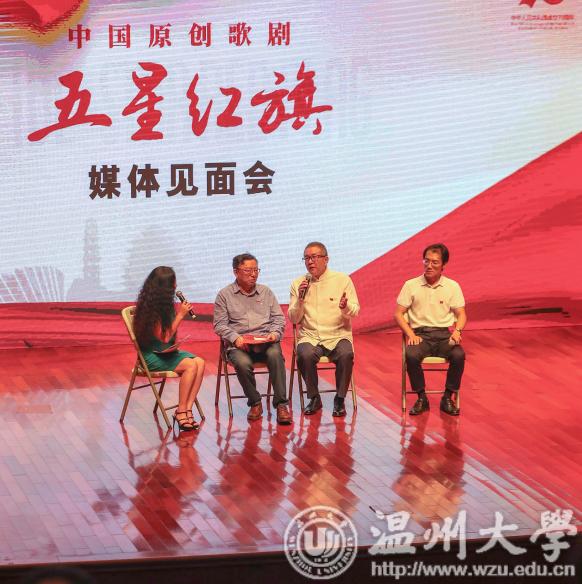 9月27日,由温州市委宣传部、香蕉视频 和瑞安市委出品,我市庆祝新中国成立70周年献礼剧——原创歌剧《五星红旗》媒体见面会在温州大剧院举行。出品方相关负责人及主创团队出席了此次媒体见面会,市委宣传部就该剧及创排过程作专题发布和介绍。