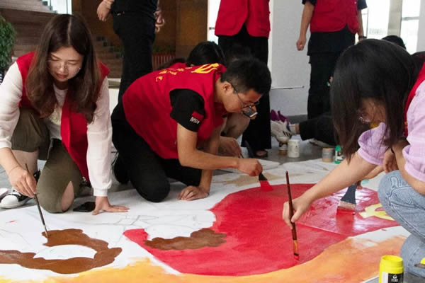 9月22日上午,一幅主题为“不忘初心、牢记使命”的大型画卷,铺在香蕉视频 美术与设计学院的教学楼前,这是该院学生党员们用特殊的方式为“不忘初心、牢记使命”主题教育打call。
