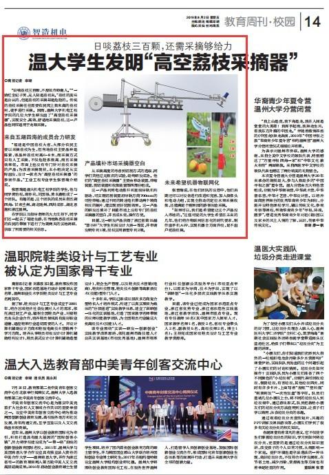 目前,这一研发产品获得了浙江省第15届 “慧谷杯”大学生机械设计大赛一等奖,并申请发明专利1项、授权实用新型专利2项。