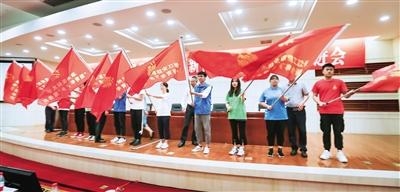 学生代表上台授旗。赵用 张闻哲 摄
