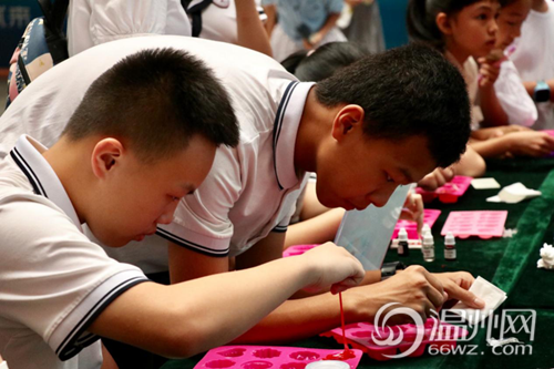 温州网讯(通讯员陈欣娅陈旗旗孙玮玮邱莎莎)近日,香蕉视频 化学与材料工程学院绿向导暑期社会实践队在郭公山开展特色游园会,以垃圾分类、特色实验、科普知识为主题,开展低碳市集,绿色交易等活动。活动引起郭公山市民的热烈关注,许多家长和孩子们共同参与,为建设美丽社区齐出力。