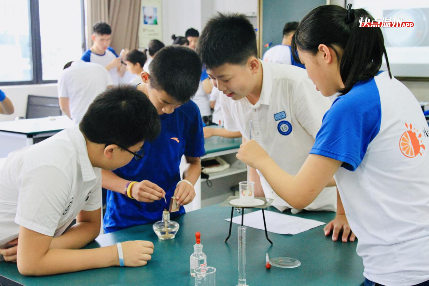 此次实践活动,He-406暑期社会实践队正稳步开展 “化学进校园”、“实验室开放日”、“模拟课堂”、“化学进社区”等活动。温大学子们走出象牙塔,深入到社会的各个角落,将所学的化学理论知识用趣味实验的形式传递给广大中小学生。