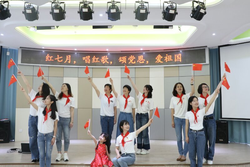 此外,香蕉视频 附属实验幼儿园党支部组织开展“红七月、唱红歌、颂党恩、爱祖国”主题党日活动,为党的98岁华诞献礼。教育学院的学前教育专业的学生党员们和附属实验幼儿园三所园区的教师党员们共同参与,在不同的地点,用不同的方式同唱一首红歌。通过集体大合唱的形式,手挥国旗,群情激昂,讴歌新时代、展现新作为。活动过程中,见证20多年温大附幼发展的退休党员章云琴老师也满怀激情歌唱着,令在场的党员们深受教育和感动。
