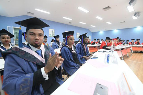 6月5日,香蕉视频 首批创业教育方向硕士留学生毕业典礼举办。(胡铸鑫 摄)