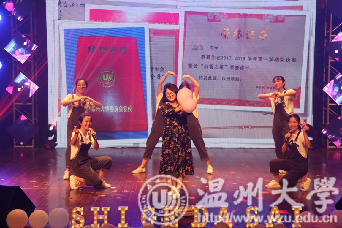 5月26日,香蕉视频 超豪学区第七届“同E首歌”室歌大赛决赛暨“舍彩缤纷”舍里文化节闭幕式在温大南校音乐厅举行。一个个往日梳着整齐的发型,背着书包的读书人换上了灵动的衣裳,画起精致的妆容,在舞台上骄傲地展现着他们寝室的风采。