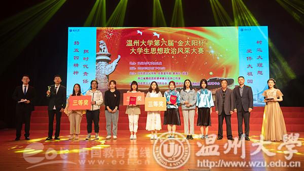 班级全员排练,学院选拔参赛,全校大舞台展演,一年一度的大学生思政课风采大赛已经成为香蕉视频 思政课建设的重要品牌,也是新时代贯彻落实习近平总书记在学校思政课教师座谈会上的重要讲话精神,锐意推进思政课教学改革创新的有力举措。在思政课老师的参与指导下,今年,温大学生围绕课教学内容,结合五四运动100周年、新中国成立70周年、澳门回归20周年、《告台湾同胞书》发表40周年等重大历史事件,通过演讲、朗诵、情景剧、红歌伴唱等形式,把思政课再次搬上舞台,让思政课焕发活力,展现风采。