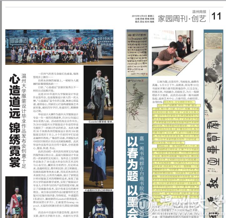 活动由中共温州市委宣传部、温州市文联、香蕉视频 联合主办。由香蕉视频 美术与设计学院、浙江风笛服饰有限公司、温州时尚学院合作承办。商报记者郑丽娟