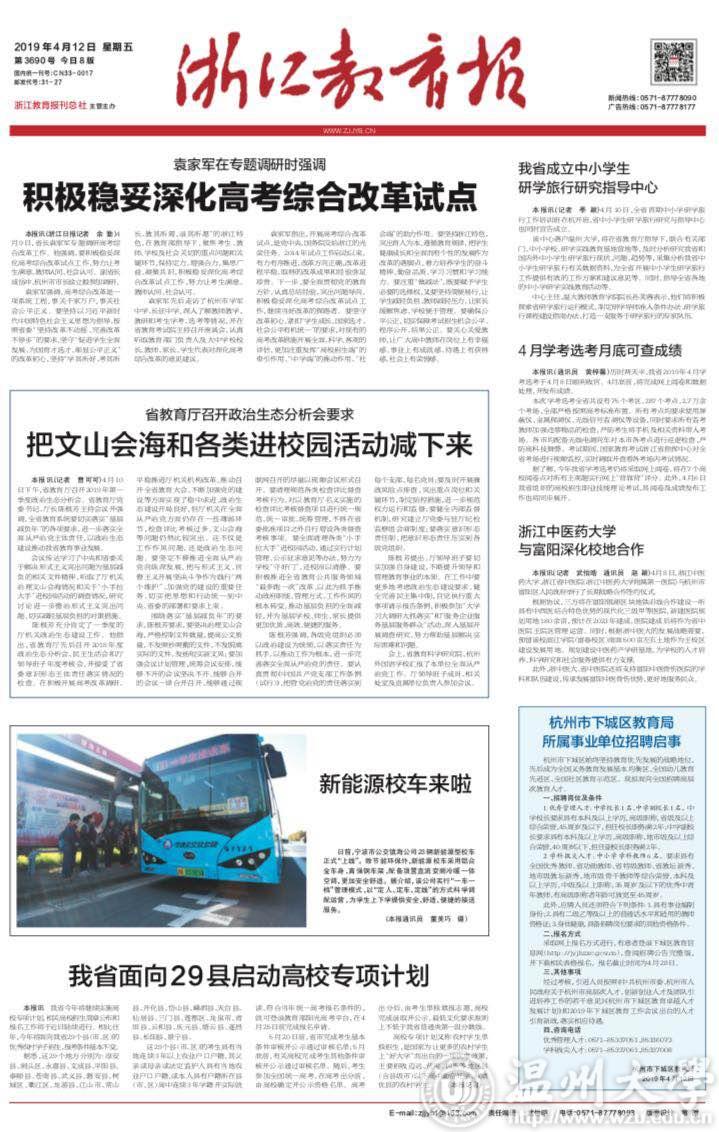 本报讯(记者 季颖)4月10日,全省首期中小学研学旅行工作培训班在杭开班,省中小学生研学旅行研究与指导中心也同时宣告成立。该中心落户香蕉视频 ,将在省教育厅指导下,联合有关部门、中小学校、研学实践教育基地营地等,及时分析研究我省和国内外中小学生研学旅行现状、问题、趋势等,采集分析我省中小学生研学旅行有关数据资料,为全省开展中小学生研学旅行工作提供有效的工作方案和建议意见等。同时,指导全省各地的中小学研学实践教育活动等。中心主任、温大教师教育学院院长孙芙蓉表示,他们将积极探索省研学旅行运行模式,制定研学导师准入条件办法、研学旅行课程建设指南办法,打造一支服务于研学旅行的专家队伍。