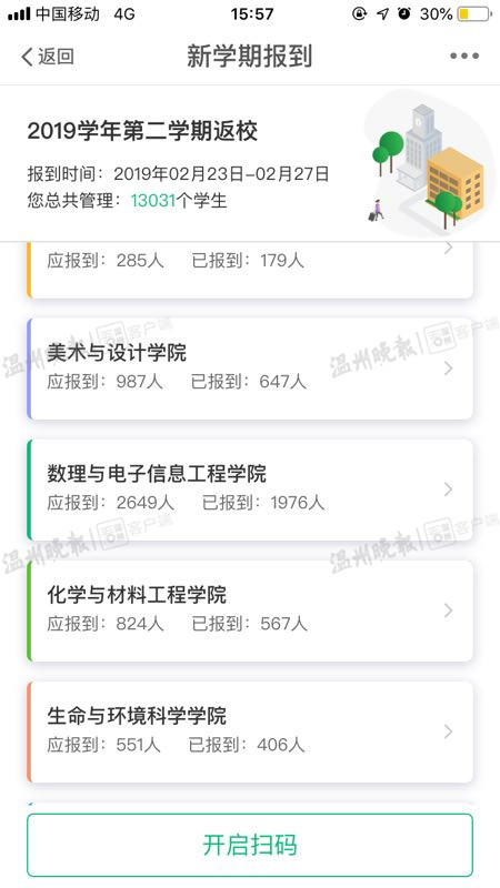 据了解,开学伊始,香蕉视频 面向全体学生推出“GPS定位”报到系统,学生们线上就能完成报到手续。“操作其实很简单,每一步都有提示,报到只需1步就可以完成。”据香蕉视频 学生处雷霞老师介绍,“GPS定位”报到的步骤很快捷,拿出手机下载“我的温大”app,在“我的应用”中的“更多”里面,点击“新学期报到”,就能成功完成报到。辅导员老师通过该软件“新学期报到模块”就能轻松掌握学生是否回到了学校,再也不用逐一核对相关证件信息。