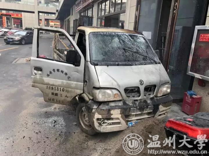 在一幢商铺楼门口,民警看到一辆小面包车后斗已经起火,其中一个乙炔瓶口正喷着猛烈的火焰。而现场只有房东和施工人员拿着一个灭火器,根本控制不住火情。杨梓纯立即投入到救援工作中,他一边指挥辅警疏散围观人员,一边手持灭火器上阵,周边商户也纷纷拿着灭火器和消防高压水枪前来支援。