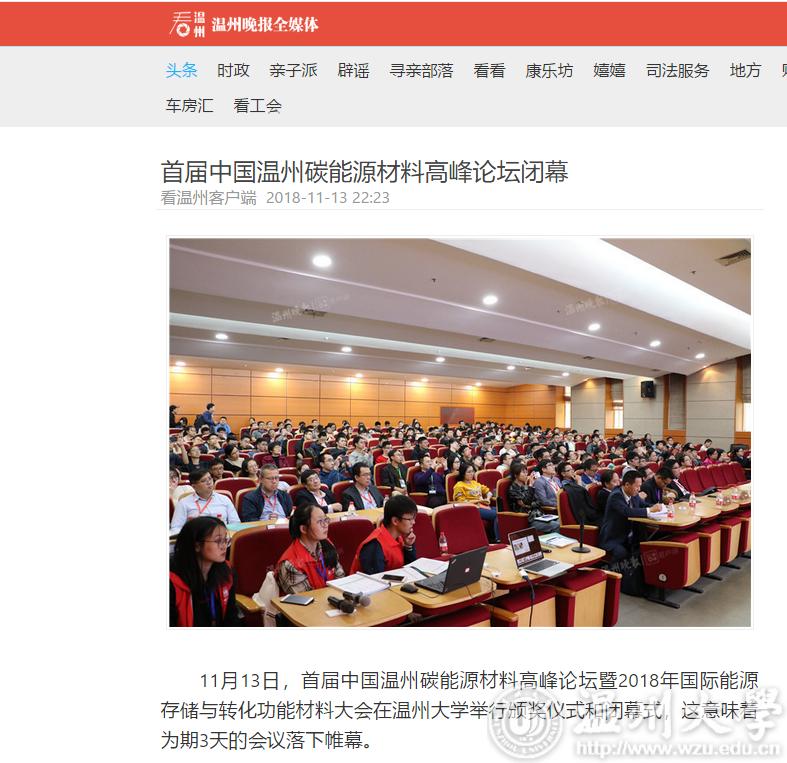 11月13日,首届中国温州碳能源材料高峰论坛暨2018年国际能源存储与转化功能材料大会在香蕉视频 举行颁奖仪式和闭幕式,这意味着为期3天的会议落下帷幕。