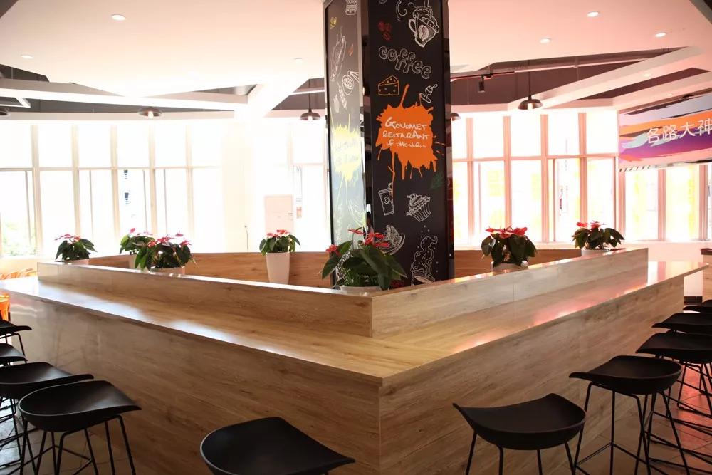 改造完成后的A2食堂,一楼依旧是大众快餐,满足学生的普通餐饮需求,但就餐用的桌椅全部换了新的,使得就餐环境多了一份舒心和整洁,也挺有小资情调;软沙发、大吊灯、原木椅……二楼三楼的环境装修更有着“网红店”的味道,学生们可以在这里吃到各地的美食,比如山东煎饼、台州小吃、日本寿司、铁板烧、鱼粉面等等;四楼是休闲区,有更为高档的商务套餐,还设有台球、乒乓球、动感单车等各类休闲活动器械。此外,食堂楼层外面装还上了扶手电梯,不日即可投入使用。