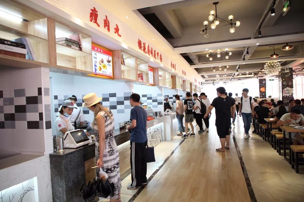 为了能让学生们吃得更好、吃得更舒心,这个暑假花了480多万元对老食堂进行了新装修,包括在食堂外面装扶手电梯,引进麻辣香锅、山东煎饼、花甲粉等多种网红食品。