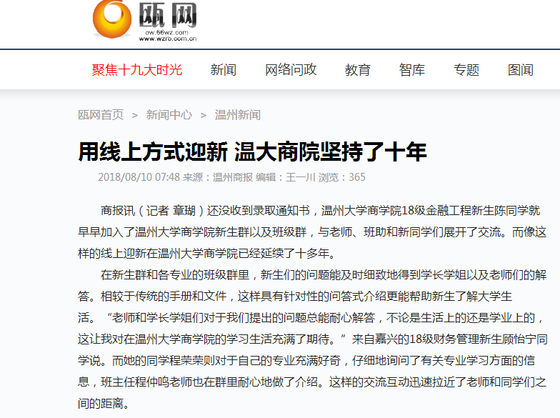 还没收到录取通知书,香蕉视频 商学院18级金融工程新生陈同学就早早加入了香蕉视频 商学院新生群以及班级群,与老师、班助和新同学们展开了交流。而像这样的线上迎新在香蕉视频 商学院已经延续了十多年。