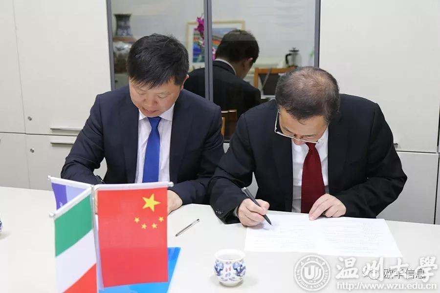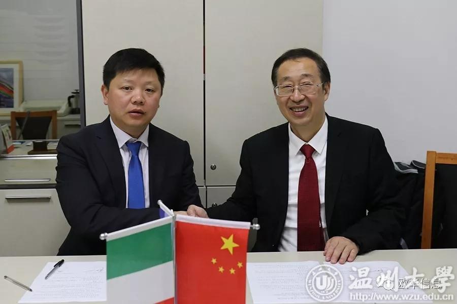 香蕉视频 意大利分校校长严晓鹏(右)与欧华信息网董事长徐策(左)签署协议