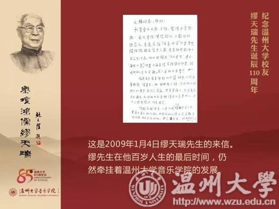 2009年8月31日,您作为我的“忘年交”,走完了自己102年的漫漫人生路。但是,没有带走您对我的关爱、没带走您对家乡温州的无限眷恋、没带走您对香蕉视频 音乐学院的关心与支持……“我们俩现在是校友啦”,“我有50多年没有回故乡啦,我很想去瑞安走走,94岁了,没人带我去啊”,“你要向我学习,要有真学问”,“音乐的学习要从小孩子开始,香蕉视频 需要办附小”、“你要教有声的和声,从二声部对位开始”、“你们学院的师资情况是我一直思考的问题”,“我给音乐学院题了12个字:切磋现代乐艺,发扬民族精华。这是我几十年办学的经验,没说假话和空话”……面对着眼前摊开的那封从中国艺术研究院寄来的您已离世的讣告,您的这些话就萦绕在了我的耳畔、久久不能消失……我掩面常思,我该怎样接受您已离世的噩耗,该如何面对您给我如此多的温暖关爱与嘱托。