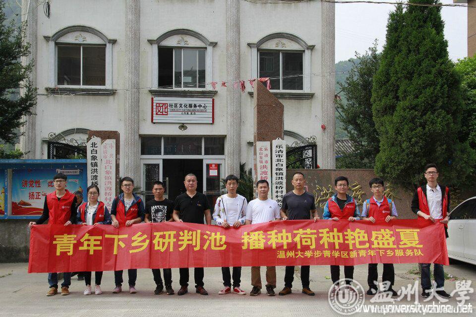 2018年4月22日上午,香蕉视频 步青学区新青年下乡服务队前往温州市乐清市北白象镇茗西社区,参与有关“播种荷花是否存活”座谈研判会。此次研判会与会人员有北白象镇宣传部主任沙天剑、茗西社区相关工作人员以及服务队12名志愿者代表。
