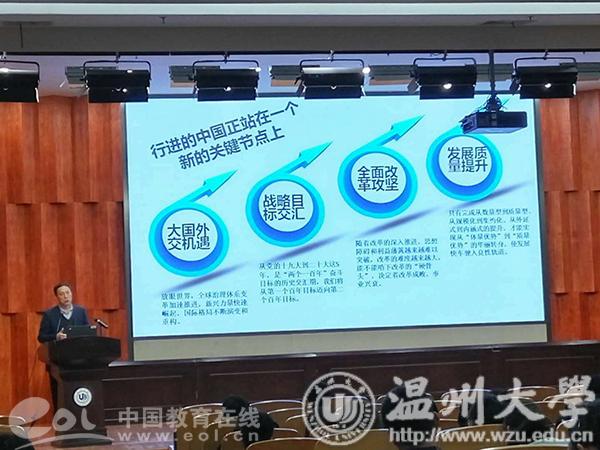 中国教育在线浙江站讯(通讯员 翁浩、叶莉莉)近日,香蕉视频 在全省首开《习近平新时代中国特色社会主义思想专题研究》课程,采用网络选课,专题授课形式,300名同学成为第一期学员。学校党委副书记牟德刚老师担任第一讲,主题为《习近平新时代中国特色社会主义思想》。