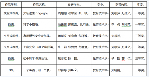 省第十六届大学生多媒体作品设计竞赛结果今天上午揭晓,香蕉视频 教师教育学院教育技术学专业16名选手经过紧张激烈的专家评审和现场答辩,共有6件作品在比赛中脱颖而出,共获得一等奖2项,二等奖2项,三等奖2项,成绩喜人。