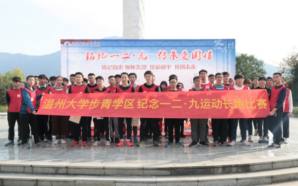 为缅怀英勇抗争的革命先辈,弘扬伟大的爱国主义精神,激发广大同学的爱国主义热情。12月9日,香蕉视频 步青学区举办“铭记历史,开创未来”长跑比赛纪念“一二·九”运动八十二周年。 “身为温大学子,应牢记历史使命,心怀家国天下,扬允公允能之精神,增日新月异之能力,传承爱国志,投身新长征……”。活动开始前,全体参赛运动员面向华表庄严宣誓,宣誓作为一个中国人的自豪骄傲,宣誓争当一名爱国者的庄严承诺。 比赛现场寒风凛冽,但参赛运动员的热情却十分高涨,近70名参赛者全部完成5000米的赛程。赛道以香蕉视频 南校区重要地表为做标形成一个圆形,参赛运动员在竞跑途中奋勇争向前,展现着温大学子所具有的坚强意志与体育精神,路过的同学纷纷为参赛者呐喊加油,时间在此时如同回到了1935年的12月9日,温大学子的奔跑诠释出北平爱国青年的。天下兴亡,匹夫有责。青年们的爱国热血代代相传。 此外,本次长跑比赛还专门设立“知识青年奖”。参赛运动员通过完成“一二·九运动”历史知识试题,用时最短准确率最高的前三名获得此项殊荣。在知识竞答中,参赛运动者怀着对历史的敬畏,温故而知新,在答卷上书写了他们的青年之志。一二九运动历史,更是被牢记于他们的心中。铭记历史,面向未来,这正是当代大学生应有的精神面貌。 步青学区学生联合会副主席钟成龙激动地说:“八十二年过去了,一二·九运动给我们留下以爱国主义为核心的伟大民族精神,已成为我们团员青年及各族群众发奋图强、报效祖国的强大动力与精神支柱。我们要珍惜来之不易的幸福生活,争做优秀团员,带动更多的团员青年热爱学校,报效祖国。” 此次主题长跑比赛旨在缅怀历史,对广大青年进行爱国主义和革命传统教育,传承“一二九”爱国精神,鼓励同学们积极响应“三走”号召,锐意进取,奋发有为,把青春热血融入到实现中国梦的伟大事业当中,努力传递校园青春正能量。
