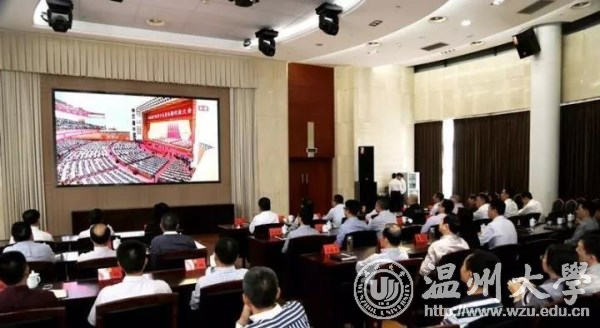龙湾区四套班子领导集中收看党的十九大开幕会。