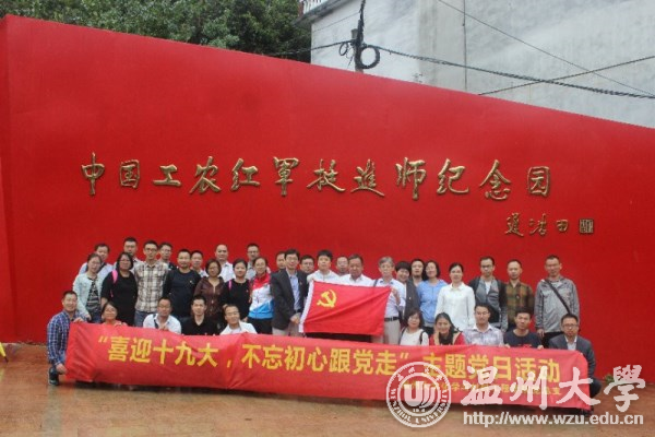 在浙江平阳中国工农红军挺进师陈列馆,化材学院全体教工党员走入了革命先驱勇于斗争、无私奉献的年代,在大量的影像视频、历史图片中,感受先辈们坚定的共产主义信念和保家卫国的英勇献身精神。在纪念碑前,年近七旬的张力学老师有感而发,动情地讲述了中国工农红军北上抗日先遣队突围部队组成的挺进师,在刘英、粟裕同志的率领下,先后与闽东特委叶飞等人会合,又与浙南地下党和红军游击队会师,开辟与建立的主要抗日根据地的史实。在场党员听后潸然泪下,感叹现在的幸福来之不易。“不忘初心,砥砺前行”这句话深深的印在每一位党员心中。 香蕉视频 化材学院方乐平书记说:“十九大处在全面建成小康社会的决胜阶段,是中国特色社会主义发展关键时期,在喜迎十九大召开时,这是我们学院全体师生对党取得的辉煌成就的赞颂,同时也是党员自我内心深处的重新审视与改正,不忘初心跟党走。”