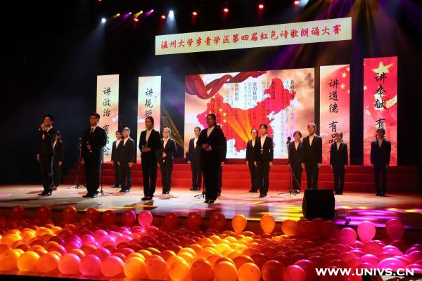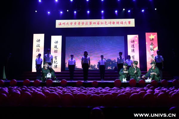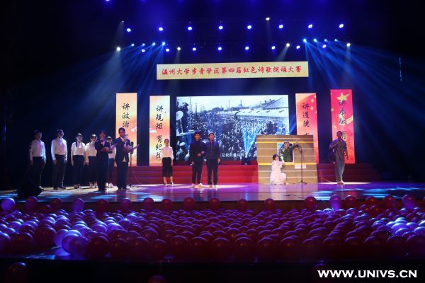 整个朗诵比赛分为“追忆红色岁月”、“高扬红色旗帜”、“绽放青春梦想”三个篇章,共有12支由党员组成的队伍参赛。据悉,本次大赛历时将近一个月,从步青学区24个学生党支部参与预赛角逐,10支队伍进入决赛,与香蕉视频 另外两个学区的溯初学区和超豪学区2支队伍一同参加决赛。比赛内容以近百年来中华红色经典诗文或歌颂祖国、歌颂党为主题的诗歌、散文作为诵读活动的基本篇目。