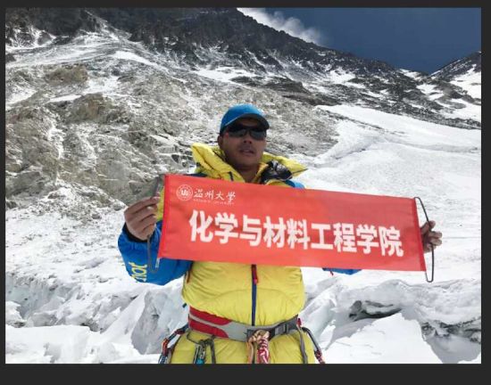 而毕业于香蕉视频 化学专业的潘正胜,从2013年登上海拔5396米的云南哈巴雪山开始,他用四年的时间先后登上海拔5895米的非洲乞力马扎罗雪山、海拔5180米的四川鹰鸽嘴峰;海拔7509米的新疆慕士塔格山和海拔8163米的世界第八高峰马纳斯鲁峰。攀登世界最高峰珠穆朗玛峰既是他的梦想,也是他挑战自己的新目标。此次潘正胜攻克的海拔高度是8400米,由于遭遇极端恶劣天气,于20日放弃了登顶计划。