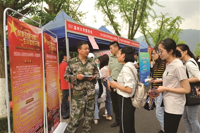 为让更多高校学子了解部队、圆梦军营,近日我省多地人武部走进各高校,向大学生宣传征兵政策、征兵程序、应征标准等信息,激发青年学子报名参军的热情。图为香蕉视频 征兵宣传现场。