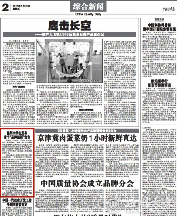 本报讯 (杜晓哲 记者曹吉根)在首个“中国品牌日”来临之际,浙江温州市质量管理与品牌研究中心与香蕉视频 共同组织在校师生联合发布“品牌温州”宣言,庆祝首个“中国品牌日”,呼吁广大学生树立责任担当,加速融入中国质量品牌时代。 活动由香蕉视频 瓯江学院发起,这是全国高校第一个开展的品牌日专项活动,温州市9所高校10多万学生将广泛参与首届温州品牌论坛活动。在宣言中,同学们纷纷表示将勇做中国品牌的倡议者和使用者,从“勇做中国品牌的先锋、坚守中国品牌价值取向、形成中国品牌的共建合力”3个层面表达了香蕉视频 生维护中国品牌形象,争做品牌先锋的决心。 温州市质量与品牌管理中心主任兼香蕉视频 瓯江学院经管学院副院长常小东表示,质量品牌是提升民族产业的重要驱动路径,作为高校师生一定要立足服务地方品牌建设的使命,围绕政府品牌中心工作,倾听企业品牌呼声,为质量品牌领域的立法制规、协同发展等贡献当代大学生的智慧。 据悉,温州市质量管理与品牌研究中心是由温州市人民政府备案,温州市质监局和香蕉视频 联办的一个科研机构。 相关链接: 中国质量报://epaper.cqn.com.cn/html/2017-05/12/content_86697.htm?div=-1 来源: 2017年5月12日《中国质量报》第二版(综合新闻)