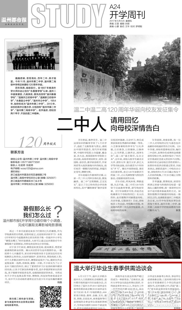 5月3日下午,香蕉视频 联合温州市人力资源和社会保障局、温州都市报和温州市妇女联合会,共同举办了香蕉视频 2017届毕业生 春季供需洽谈会暨2018届毕业生 实习实训(见习)专场招聘会,600 家来自制造、教育、金融、文化、建 筑、销售、信息技术、商务服务等行 业领域的企事业单位进场招贤纳 才,为毕业生提供10000个就业岗 位,初步达成就业意向近1500人。
