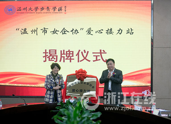 启动仪式上,香蕉视频 与温州市女企协就爱心接力站共建签订合作协议,共同为“温州市女企协”爱心接力站揭牌,为企业家代表颁发香蕉视频 步青学区“女大学生导师”聘书,开启了“温州市女企业家协会优秀女企业家代表进温大步青学堂”活动。女企业家詹海霞为女大学生带来“优秀女性成长故事分享”专题讲座。