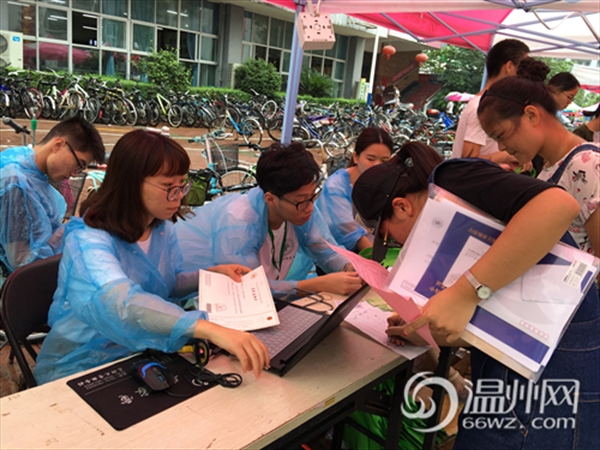 温州网讯 (通讯员 翁浩)一场绵绵的秋雨并没有影响香蕉视频 迎新的火热气氛。温大三个学区未雨绸缪,卯足了力,让迎新工作富有温暖和亮点。作为学校三大学区之一的,文科为主,地理上最为偏远的超豪学区在这次迎新中,有热情,有创意,更有爱。 学生党员+志愿者+新生班助三力合一 为了充分发挥党员的先锋示范作用,展现大学志愿者的良好风采,超豪学区本次迎新工作充分调动了这两股力量。 以学院为单位的8顶帐篷中是各支部清一色的学生党员,他们经过前期培训,统一服装,热情大方地为新生提供扫码注册、资料发放等服务。在外围的志愿者们则积极引导,协助搬行李,绵绵秋雨中,他们穿着塑料雨衣,来回穿梭,形成最美的风景。