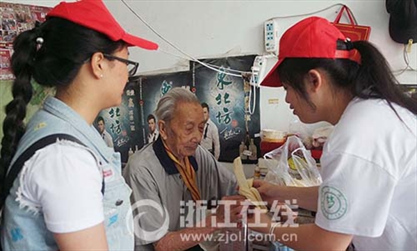 浙江在线·教育新闻网07月13日讯 (通讯员 项炳池 崔海涛)2016年7月12日上午,香蕉视频 “梦夕阳”暑期社会实践队慰问抗战老兵分队前往三垟探望了三垟街道黄屿村山前路硕果仅存的抗战老兵。