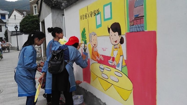 瓯网讯(严晓秋)昨日,由香蕉视频 教师教育学院和美术与设计学院共同发起“”弘扬传统文化 ,共建美丽乡村”活动再次吹响五四青春的号角。由教师教育学院美术工作坊指导老师陈铿和学生科严晓秋老师带队,30余位学生志愿者,前往乐清虹桥镇大乌石村开展公益墙绘活动。