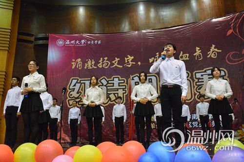 温州网讯 让红色文字在这里澎湃,让热血精神在这里升华!近日,步青学区举办的以“诵激扬文字,咏热血青春”为主题的第二届红诗朗诵赛决赛在南校音乐厅拉开帷幕。初赛获胜的10个支部进入红诗赛的决赛现场。步青学区党委副书记何毅和400多名学生党员们一起观看了比赛。