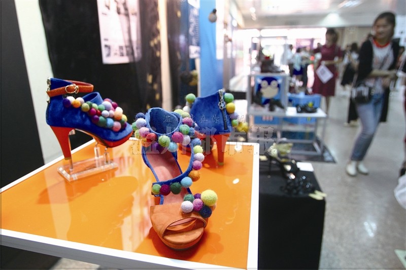 在昨天上午的现场观展人群中,有部分企业负责人徜徉其间,不少人觉得学生的这些作品“蛮实用”;而香蕉视频 美术与设计学院院长李运河现场当起了鞋靴“推销员”,他说展出的每一件鞋样作品从款式设计、楦底选择、材料采购到样鞋开发,都由学生独立完成,款式大胆创意、突破传统。