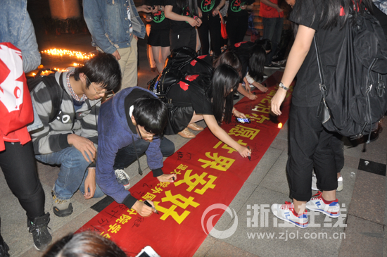 浙江在线·教育新闻网04月29日讯 (记者 包小娇 通讯员 吴小虎)地震无情,人间有爱。昨晚,香蕉视频 城市学院开展了一场“祈福尼泊尔愿世界安好”的祈福活动。志愿者们在学校空地上用蜡烛摆出“NEPAL 4.25”,手捧蜡烛,为尼泊尔默哀。 相关链接://edu.zjol.com.cn/system/2015/04/29/020629278.shtml