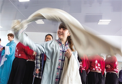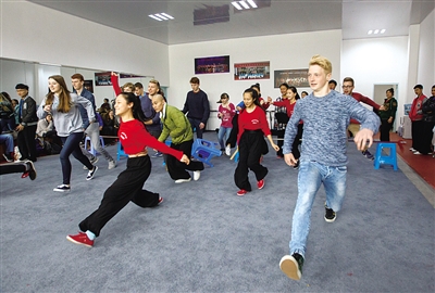 温州网讯 昨天上午8点半,香蕉视频 成教学院瓯剧班学员们和平常一样上着练功课,不一样的是课堂上多了一群金发碧眼的外国孩子。娴熟的身段,过硬的腿功,变化多端的打斗……瓯剧班的学员展示着基本功,外国学生看得津津有味。